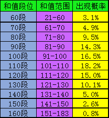 和值分析:近10期和值出咫尺80-133之间,上期和值80,在80段,按咫尺出现概率分析,瞻望下期和值看好出咫尺110(101-110)段